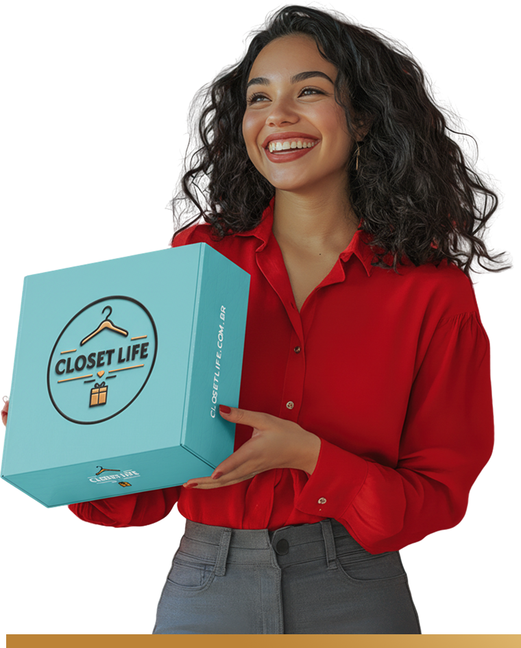 Com a Closet Life, você recebe uma box personalizada de roupas direto na sua casa, experimenta no seu tempo e fica só com o que realmente ama. A conveniência de uma curadoria de estilo, sem sair de casa e sem pressa.